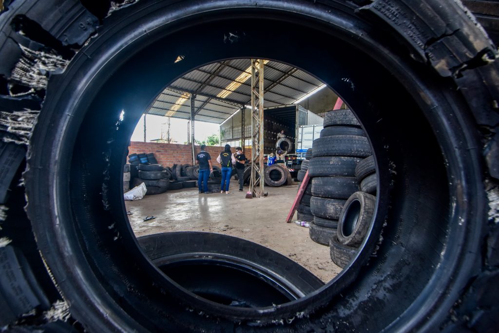 “Com caçambas, fazemos a coleta dos pneus que foram descartados irregularmente nas vias e damos o destino correto. Todo o fim de semana cerca de 45 mil toneladas de pneus são enviadas para uma empresa nacional que trabalha com a logística reversa do material, transformando-os em fonte de energia”, disse o secretário da Secretaria de Serviços Urbanos (Seurb) José Raimundo Cardoso Ferreira.