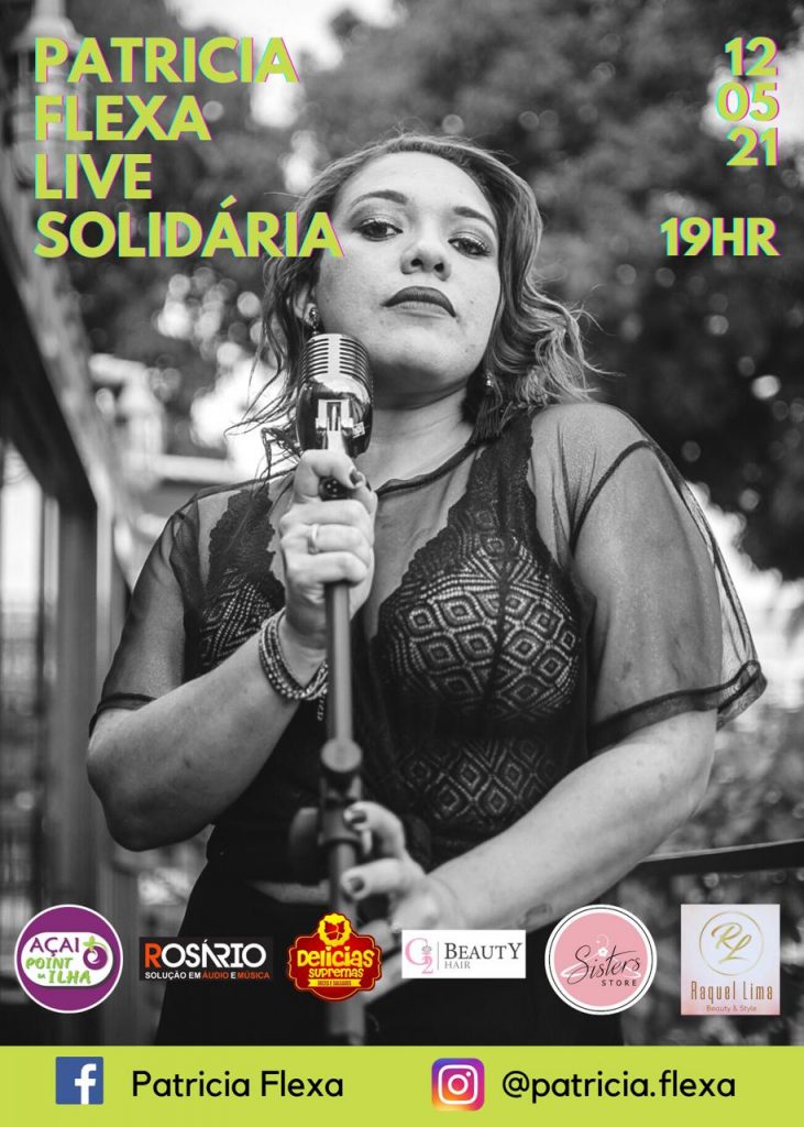Quarta, 12 de maio, às 19h. Live show solidária ao vivo no Facebook e Instagram da cantora paraense Patricia Flexa. A live visa sortear brindes e arrecadar doações para a Campanha !Corrente do Bem”.
