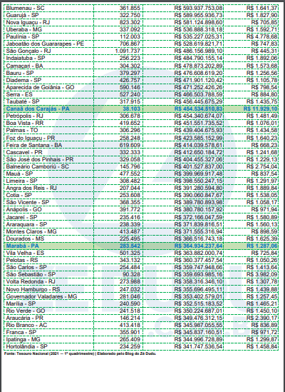 Belém é 20ª, Parauapebas é 36ª, Canaã é 67ª e Marabá, 86ª. Enquanto “Terra Prometida” se farta com triunfo da arrecadação, metrópole paraense vai sendo engolida por cidades menores.