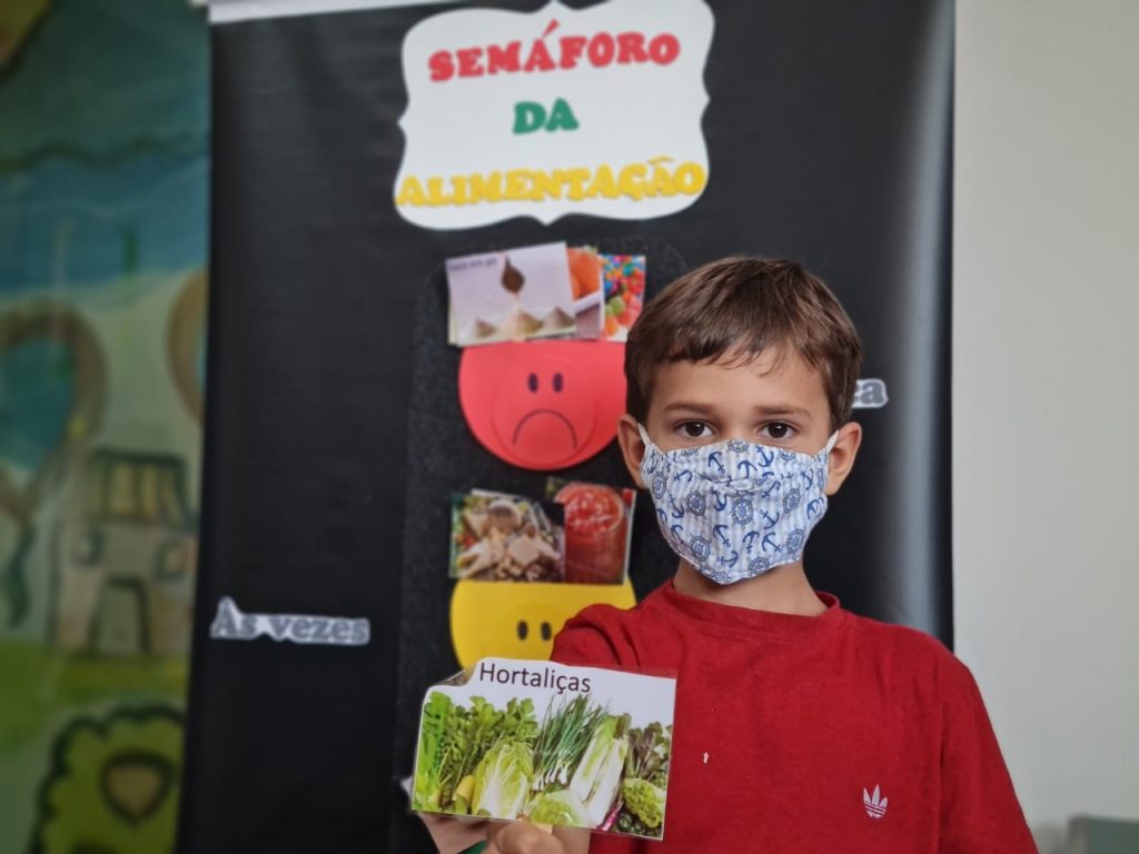 Ele disse que aprendeu que “as comidinhas do sinal vermelho não são para comer todo dia”, como “jujubas, coisas doces”. João estava referindo-se ao grupo de alimentos carregados em açúcares.