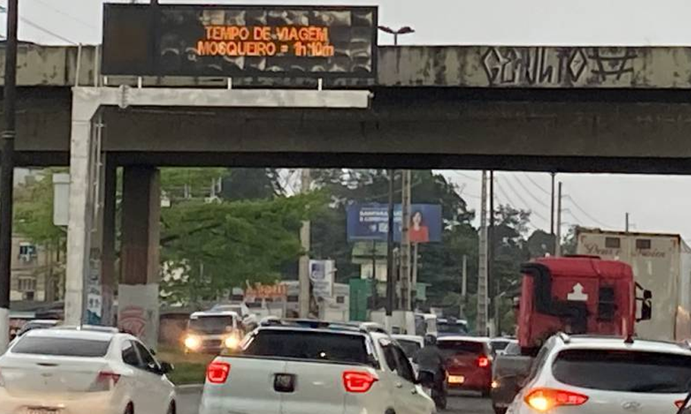 Desde a tarde da última quinta-feira (11), o PMV também mostra aos condutores o tempo de percurso para os destinos mais procurados por quem sai da capital, como Castanhal, Salinópolis e o distrito de Mosqueiro.