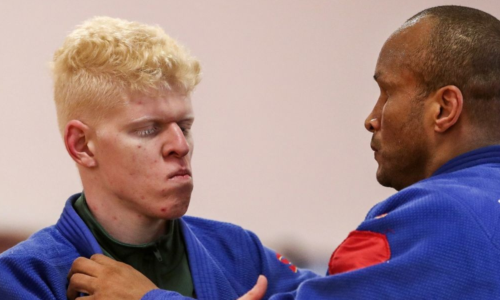 Tem baixa visão por conta do albinismo. Thiego começou a praticar judô em 2011, aos 12 anos de idade.