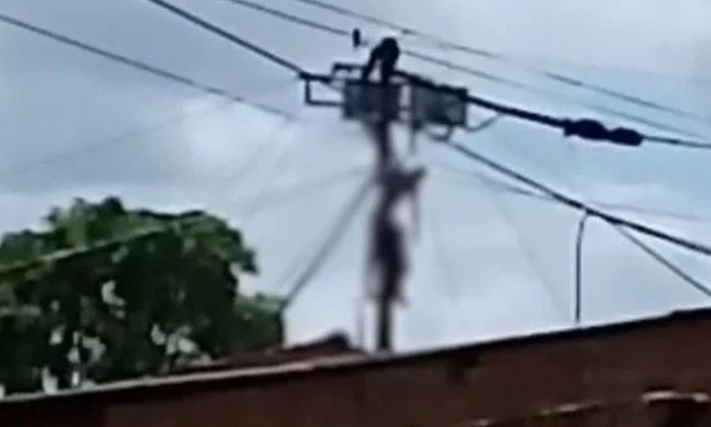 Vídeo | Homem fica pendurado em poste após ser eletrocutado