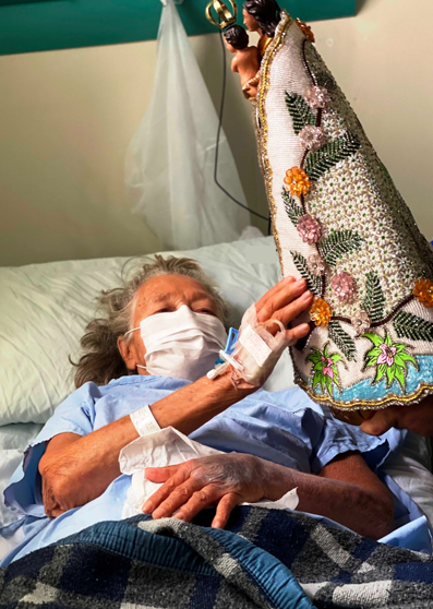 A paciente, internada há 14 dias no HRSP para se recuperar de uma queda acidental em casa, no município de Rondon do Pará, é uma devota fervorosa da padroeira dos paraenses, e reza diariamente pedindo proteção divina para todos os enfermos no hospital.