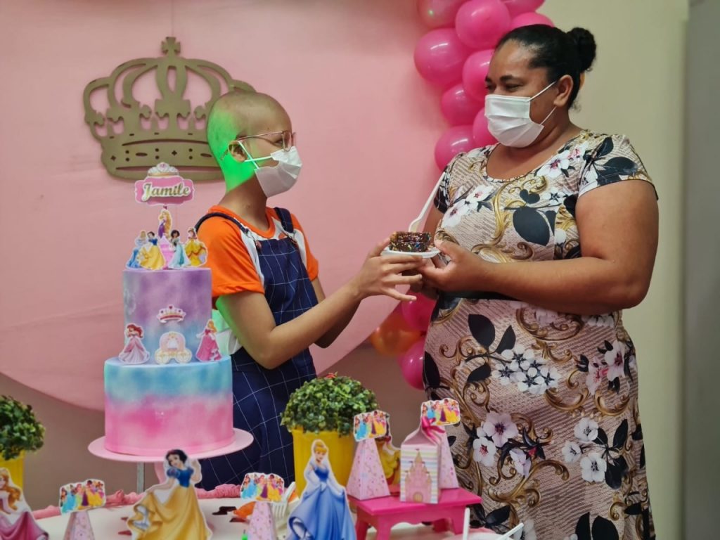 Ganhar uma festinha de aniversário com o tema de princesa sempre foi a vontade da adolescente Jamile da Conceição, que faz tratamento há 11 meses contra uma leucemia. Ao chegar para assistir aula, pela manhã, na Classe Hospitalar do Oncológico Infantil Octávio Lobo, em Belém, a menina foi surpreendida com a comemoração que tanto desejava.