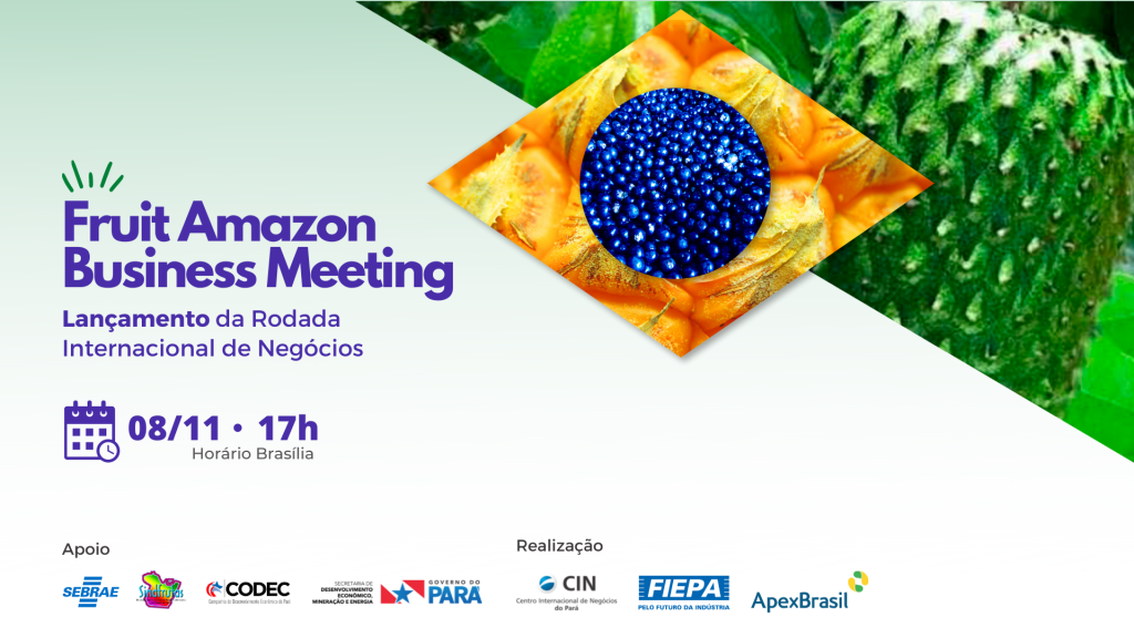 Para marcar o lançamento da Fruit Amazon Business Meeting, rodada internacional de negócios que vai conectar empresas paraenses e de outros estados da Amazônia Legal a compradores internacionais do setor da indústria da fruticultura, o Centro Internacional de Negócios da FIEPA realizará no dia 08 de novembro, um evento virtual transmitido pelo Facebook e Youtube do Sistema FIEPA, a partir das 17 horas.