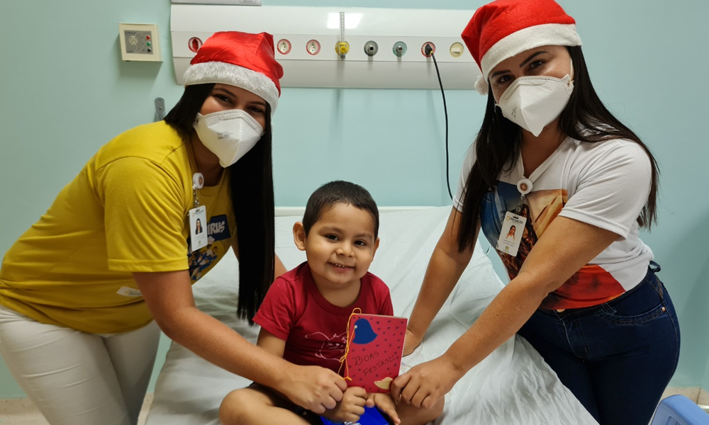 Entre as crianças internadas que elaboraram sua cartinha está o pequeno Calebe da Fonseca, de 4 anos. Morador de Almeirim, na região Oeste do Pará, Calebe está em tratamento no Oncológico Infantil desde maio deste ano. O paciente aguarda todo animado para receber seu presente.