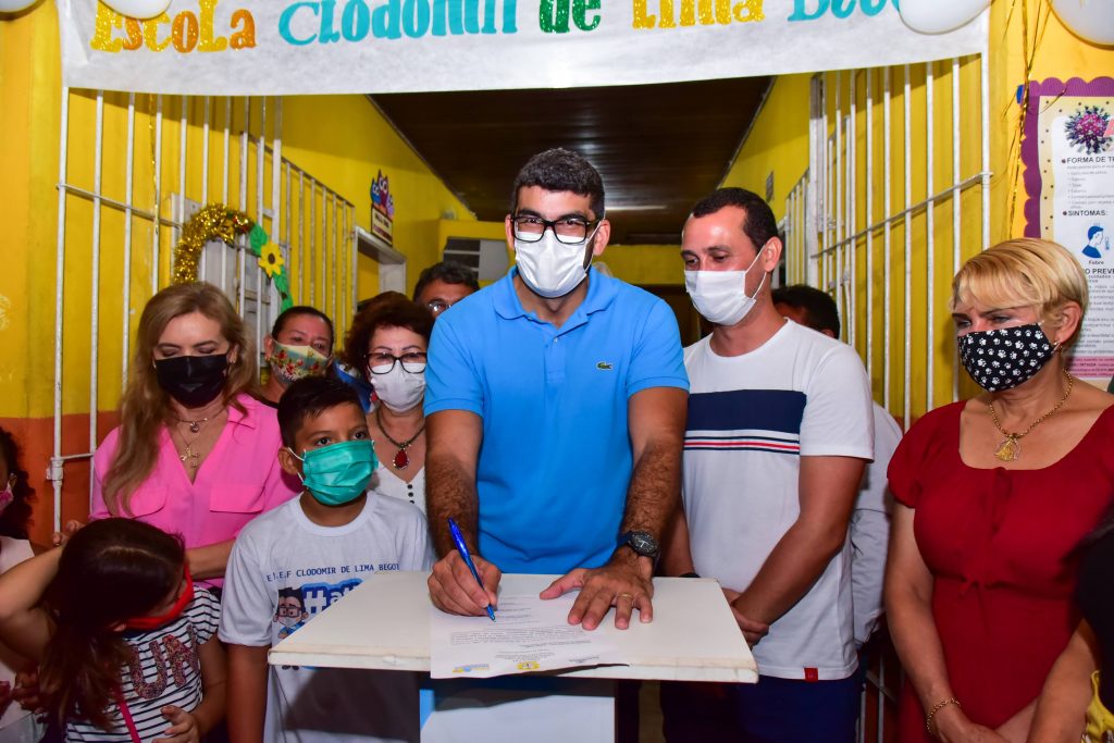 Para garantir uma educação de mais qualidade que beneficie a todos, o prefeito de Ananindeua Dr. Daniel Santos, assinou, na tarde desta quarta-feira (08), a Ordem de Serviço (OS) para a reconstrução e aparelhamento da Escola Municipal de Ensino Fundamental Clodomir de Lima Begot. Durante o ato de assinatura, estiveram presentes a secretária de Educação, Leila Freire, a gestora da escola e demais autoridades locais.