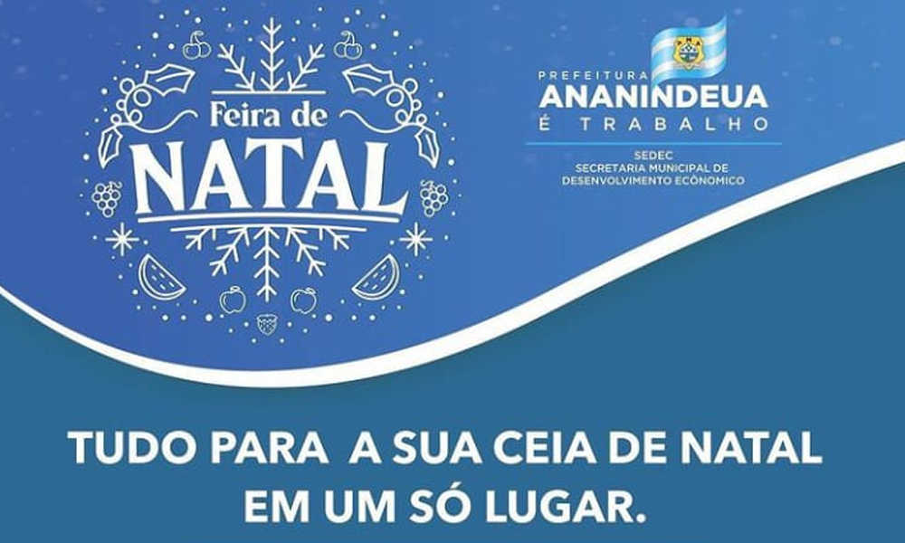 A Prefeitura Municipal de Ananindeua, por meio da Secretaria de Desenvolvimento Económico (SEDEC), irá realizar a feira de produtos natalinos, nos dias 22, 23 e 24, onde os moradores do Município poderão comprar tudo o que precisarem para compor sua ceia natalina. A feira visa fomentar a economia local, movimentando os pequenos negócios e levando comodidade aos moradores de Ananindeua.
