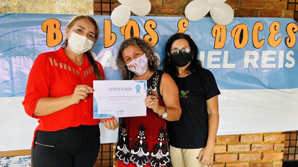 Na manhã desta sexta-feira (11), a Prefeitura de Ananindeua, por meio da Secretaria de Cidadania, Assistência Social e Trabalho (Semcat), em parceria com o Serviço Nacional de Aprendizagem Rural (Senar) realizaram a entrega de certificados às alunas concluintes do curso de qualificação profissional e geração de renda – Bolos e Doces. O treinamento ocorreu no Centro de Referência de Assistência Social (CRAS) Daniel Reis, localizado no bairro Centro.