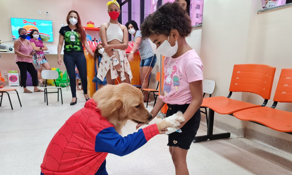 O pet, que chegou ao hospital fantasiado de Homem-Aranha, esbanjou simpatia e garantiu carinho e animação de todos os pacientes, principalmente entre os pequenos.