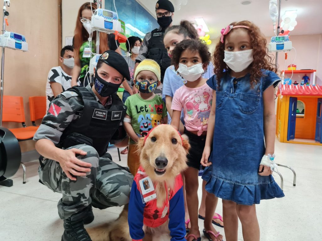 Alecrim foi treinado desde filhote para se relacionar com crianças e idosos. “Sua missão é visitar escolas, creches, asilos e hospitais, espalhando alegria e amor por onde passa”, explicou a Tenente Marina.