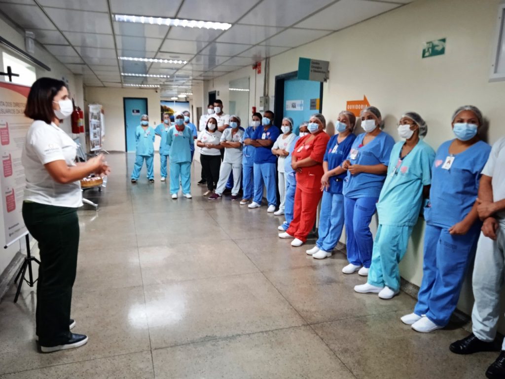 Flávia Fernandes, analista de Humanização, que atua no Regional, explica que o atendimento humanizado é aquele em que todos os colaboradores da instituição atuam para que o paciente tenha um tratamento digno e apropriado, sendo ouvido, respeitado, compreendido e aconselhado.