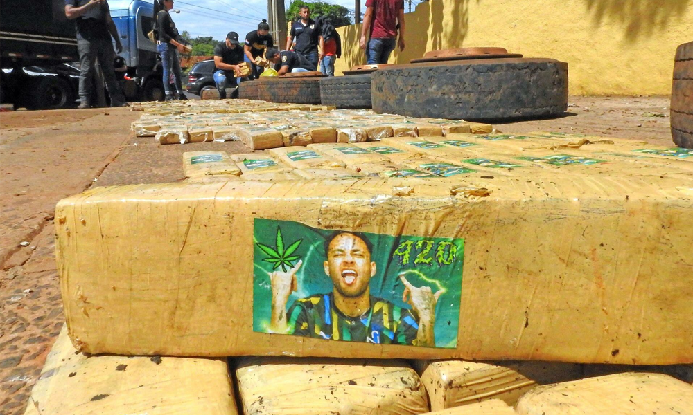 A polícia do Paraguai apreendeu nessa quarta-feira (6) mais de 800 quilos de maconha que estavam sendo transportados em um caminhão dentro de pacotes estampados com a foto do jogador Neymar. A polícia supõe que o destino da droga era o Brasil.