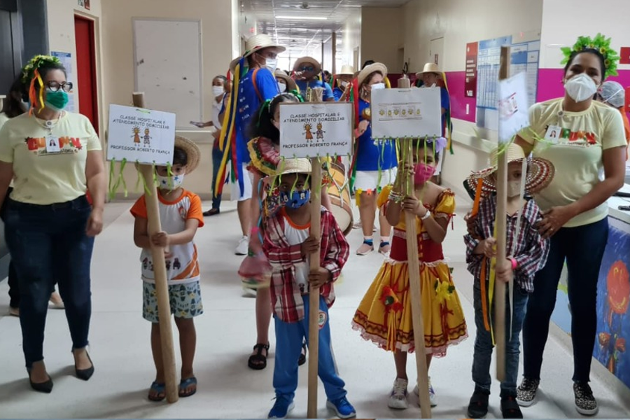 Na unidade, que pertence ao governo do Estado e atua como principal referência em oncologia pediátrica no Norte do país, a programação junina da Classe Hospitalar Prof. Roberto França, voltada para estudantes-pacientes que estão em tratamento contra o câncer, aconteceu em decorrência do trabalho integrado de disciplinas que abordam as manifestações culturais brasileiras.