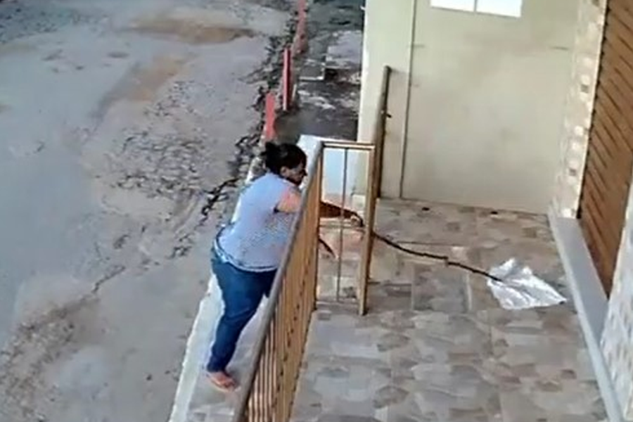 Nas imagens, a mulher chega com um pedaço de pau. Olha para o lado e puxa o pano de chão, que estava em frente ao estabelecimento comercial. O vídeo já tem quase dois milhões de visualizações, 88 mil curtidas e mais de 7 mil compartilhamentos.