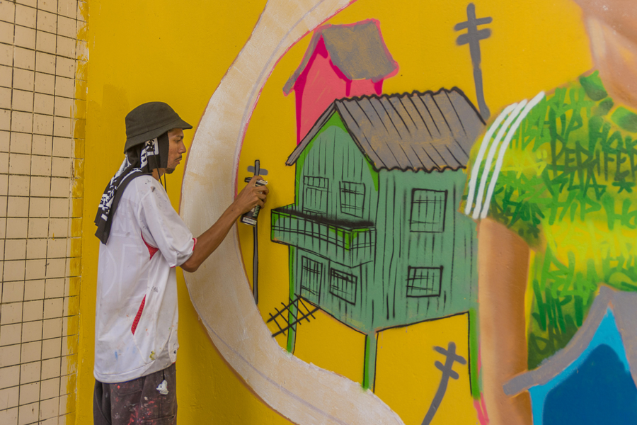 Um corredor cultural multicolorido, que exalta os símbolos e as cores do bairro do Guamá, será entregue na próxima quinta-feira, 30 de junho, às 14h, pela Psica Produções. O projeto “Rio que Chove” compreende ações de graffiti unindo três pontos distintos da periferia mais populosa de Belém, com direção artística da artista visual Letícia Nunes, que assina seus trabalhos como Lenu, e direção urbanística de Tuyuka Lara. Na programação de lançamento da primeira parte do projeto, serão realizadas pinturas ao vivo, oficinas de reciclagem de latinhas de spray para crianças, discotecagem e batalha de rimas.
