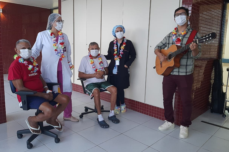 Com direito a colar havaiano, pacientes e acompanhantes têm tarde com música e dança no Hospital Abelardo Santos