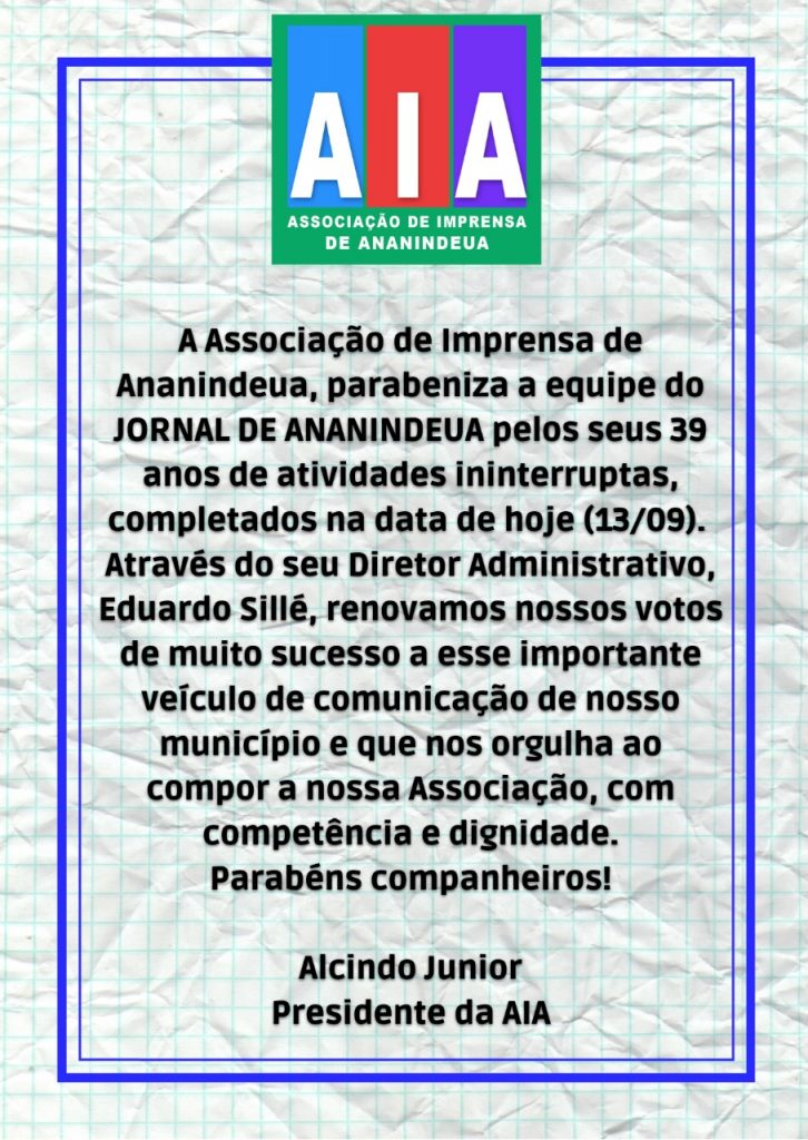 O Portal Correio Paraense e a AIA- Associação de imprensa de Ananindeua parabenizam toda a equipe do Jornal de Ananindeua por esta data tão significativa.