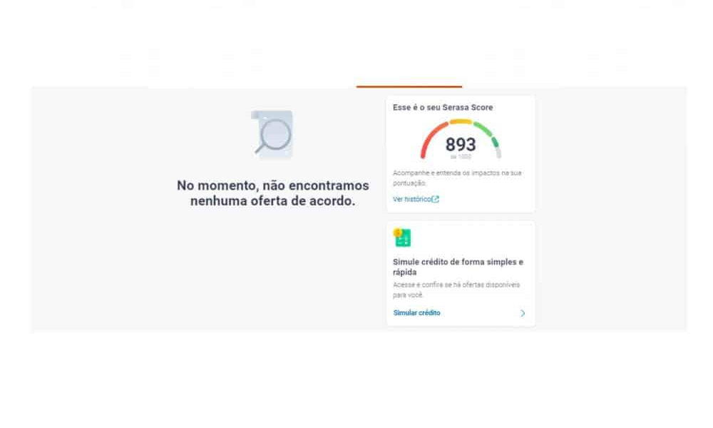 Por fim, independente de você ter conta ou não, após realizar e se logar, o site te levará para a home com o valor do score, ofertas de acordos e simulação de créditos.