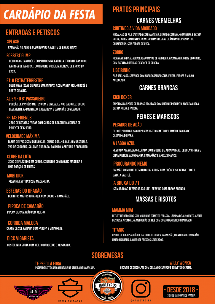O Cardápio da festa foi elaborado com carinho e dedicação para ninguém botar defeito!