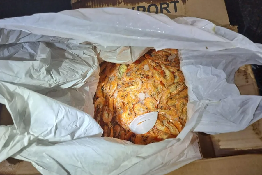 Entretanto, de acordo com a PRF, houve divergência entre a carga transportada e os documentos fiscais apresentados, uma vez que no documento fiscal constava que a carga seria de camarão de cativeiro inteiro e fresco e a carga transportada, de fato, seria de camarão salgado, como constatado pela equipe.