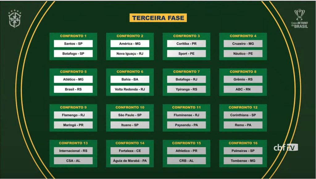 Ao fim da terceira fase, um novo sorteio será feito na sede da CBF para definir os confrontos das oitavas de final.
