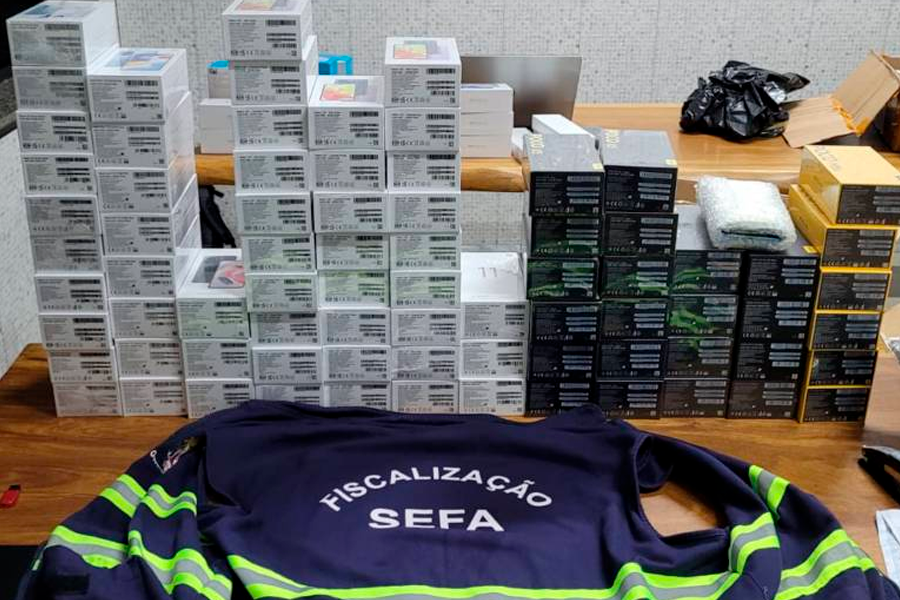 Agentes de fiscalização da Secretaria da Fazenda (Sefa), ligados à Unidade de Controle de Mercadorias em Trânsito do Araguaia, na região de integração do Araguaia, apreenderam em Conceição do Araguaia, na última terça-feira (04), diversos produtos eletrônicos, incluindo 171 aparelhos celulares, cinco tablets, seis relógio tipo smart e quatro consoles de videogames sem notas fiscais. A mercadoria foi avaliada em R$ 520.096,85 e vinha de Goiânia (GO) com destino às cidades paraenses de Redenção, Tucumã e Ourilândia do Norte.
