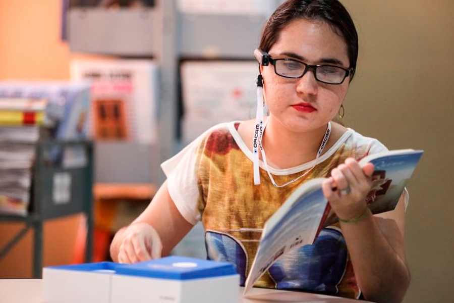 “O braille não pode andar separado da tecnologia e os óculos são exemplos disso, porque proporcionam leitura imediada, a partir do scanner da página e a leitura por um dispositivo que acopla a armação. Isso dá independência porque a pessoa lê o que quer e a hora que quer, sem precisar passar pelo processo de conversão. Temos três óculos disponíveis para utilizar no espaço”, conta o pedagogo. Thaiane comemora a possibilidade de poder ler qualquer livro com os óculos. “Em muito menos tempo e com mais facilidade, leio livros de forma imediata. Eu amo ler livros de ficção e de comunicação. Essa tecnologia é uma revolução”, assegura a jornalista.