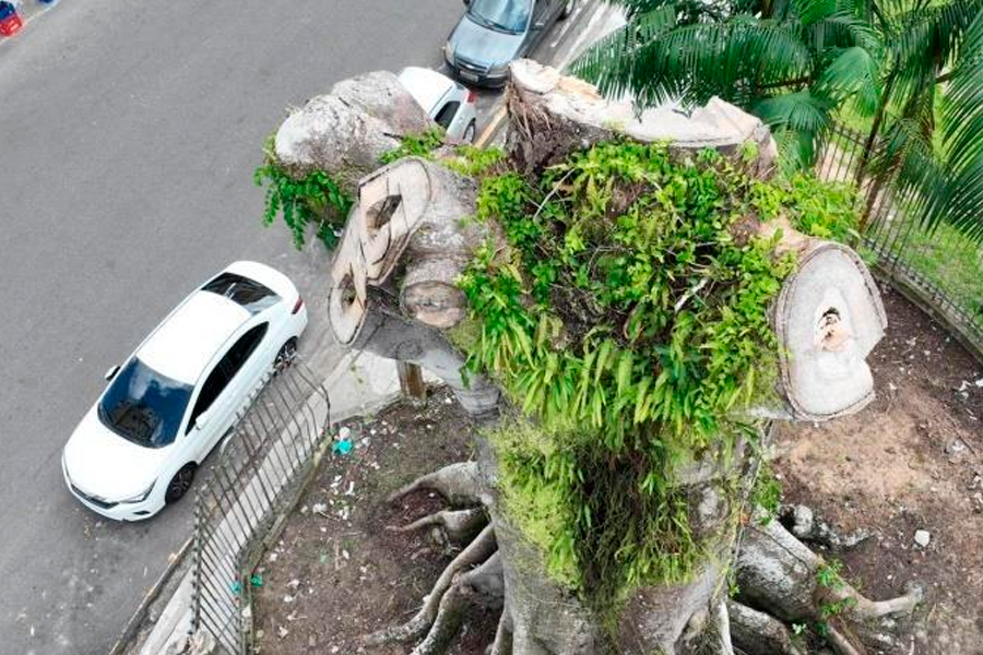 Tronco e raiz da samaumeira da praça Santuário em Belém, serão retirados e mesma espécie será plantada no local