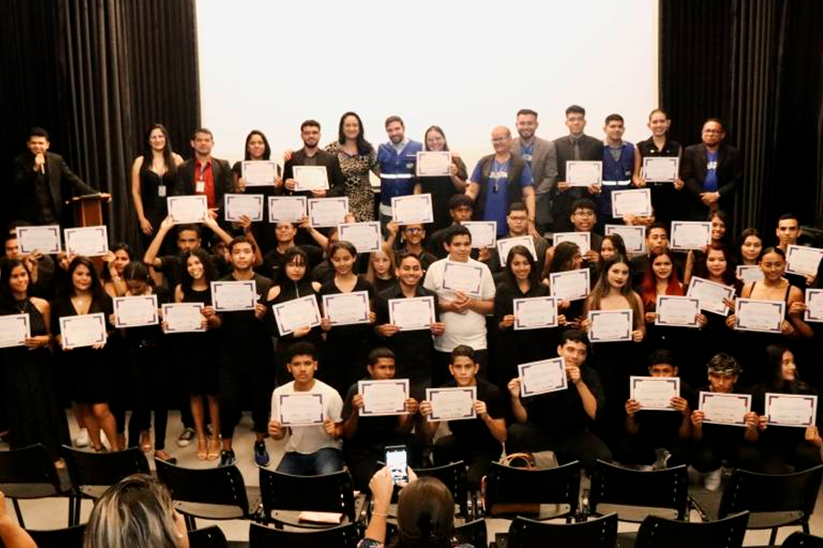 O teatro da Usina da Paz Professor Amintas Pinheiro, no bairro do Icuí-Guajará, em Ananindeua (Região Metropolitana de Belém), ficou lotado na cerimônia de conclusão do curso de “Formação de Liderança para a Juventude”, ofertado pelo governo do Estado, por meio da Fundação ParáPaz, com o objetivo de preparar jovens para atuação no mercado de trabalho.