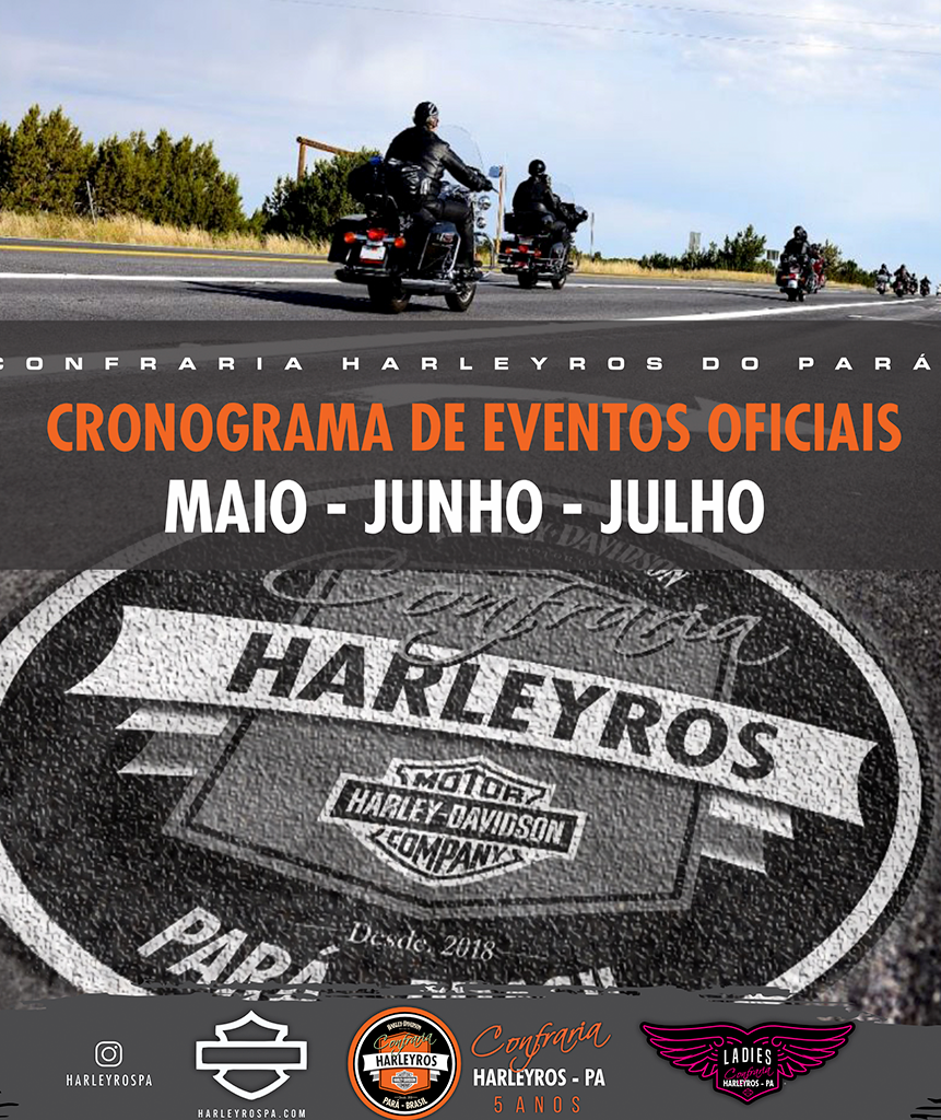 Baixe o cronograma completo em – Cronograma Harleyros do Pará, se quiser participar de algum evento basta entrar em contato com a direção da confraria através do email contato@harleyrospa.com.