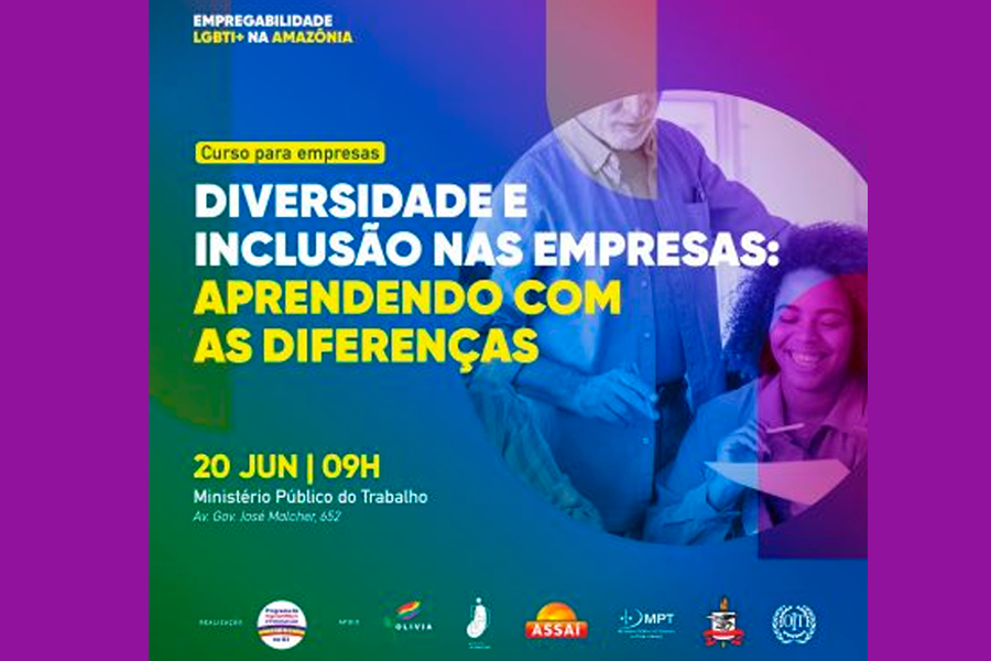 Acontece no próximo dia 20 de junho, na sede do Ministério Público do Trabalho PA-AP (Avenida José Malcher, nº 652), em Belém, o curso “Diversidade e Inclusão nas Empresas: aprendendo com as diferenças”, promovido pelo Programa de Formação e Empregabilidade LGBTI+ do Instituto de Ciências Jurídicas (ICJ) da Universidade Federal do Pará (UFPA). A capacitação terá início às 9h, no auditório do órgão. As inscrições estão disponíveis no link: https://www.even3.com.br/diversidadeempresasbelem/