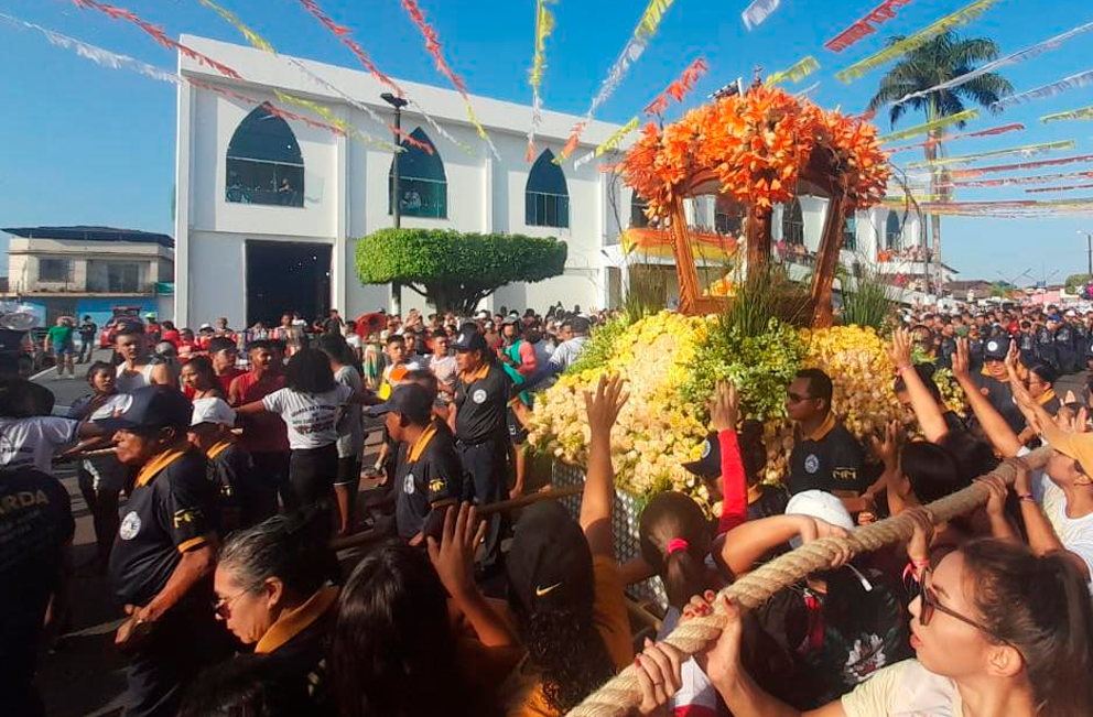 Já é tradicional a grande homenagem em frente à Igreja de Pedra. A Berlinda para na frente da igreja, onde um caminhão serve de palco para que um grupo de carimbó da cidade execute o hino “Vois Sois o Lírio Mimoso” ao rítimo de carimbó. Depois, a procissão segue até a Igreja Matriz Madre de Deus, há dois anos fechada para obras de restauração em toda a sua linha arquitetônica.
