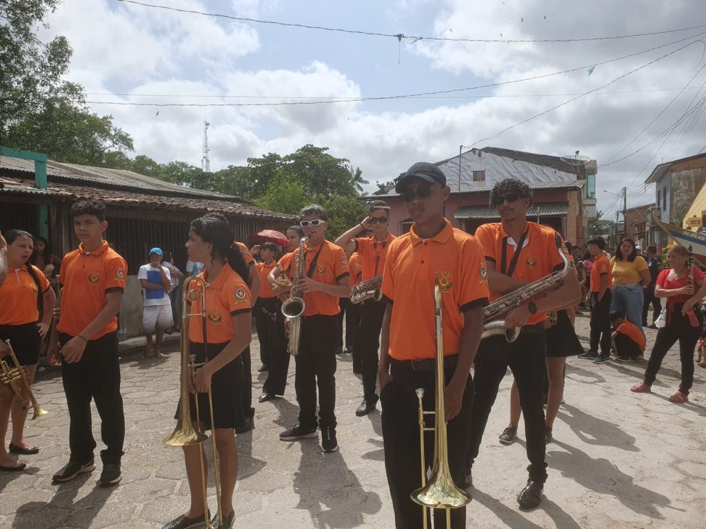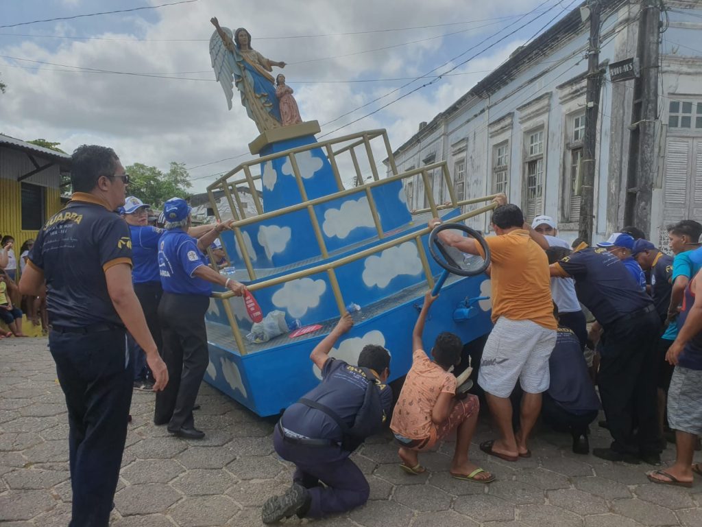 No dia do Círio de Nazaré, essas bandas fazem o diferencial, animando os romeiros pelas estreitas e históricas ruas da cidade com seus prédios da era colonial. A procissão começa com a missa solene de abertura, às 7h, na Igreja de São Sebastião, no bairro do Arapiranga. Depois, a imagem é colocada na Berlinda, a qual é atracada à corda e, então, os romeiros começam o trajeto, de cerca de quatro quilômetros. A Berlinda com a santa é o último carro da procissão. Ela é antecedida pelos carros dos milagres, dos anjos, carroça puxada a búfalo com o espocar dos fogos, mais os carros de som animando os devotos com orações, cânticos, narrativas da vida de Nossa Senhora ao lado de seu filho Jesus Cristo, desde o nascimento ao martírio na cruz e ressurreição; a vinda do Espírito Santo, o surgimento da igreja e a missão salvífica de Cristo na pessoa de cada romeiro e de cada devoto.
