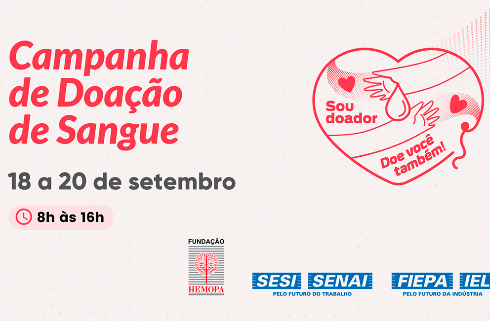 Para aumentar os estoques de sangue disponíveis no Estado, o Sistema Federação das Indústrias do Estado do Pará (FIEPA), em parceria com a Fundação Centro de Hemoterapia e Hematologia do Pará (Hemopa), promoverá nos dias 18, 19 e 20 de setembro, das 08 às 16 horas, mais uma edição da Campanha “Doe Sangue e Salve Vidas”.