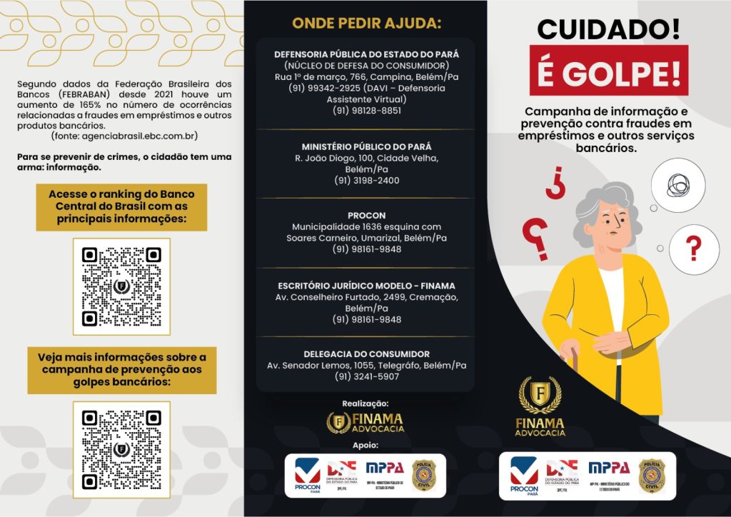 Diante destes e outros tipos de golpes bancários, no domingo (17) será realizada uma ação na Praça da República, em Belém, visando alertar e conscientizar mais pessoas sobre os riscos de golpes bancários. A ação é organizada por Cássio Bitar, que explica que a ação “tem como finalidade trabalhar a informação ao consumidor, sobretudo o idosos e pensionistas do INSS, principais vítimas deste tipo de fraude. A informação adequada pode prevenir novas vítimas. A informação é um dos pilares da defesa do consumidor, e deve ser trabalhada constantemente”, enfatiza o Defensor Público do Estado do Pará. É ele que ainda destaca que outras programações ocorrerão em diversos espaços da capital paraense.