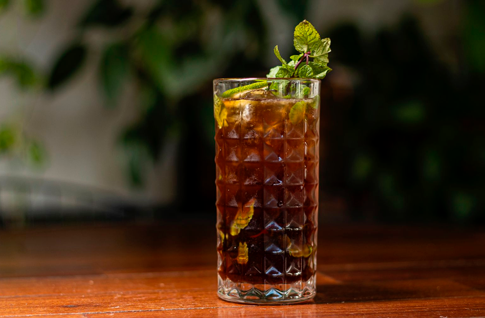 Ingredientes: Nossa versão sem álcool e com um twist. Xarope de Guaraná Andrade, vindo de Mauá, no Amazonas, limão, hortelã e água com gás. Servido em copo highball.