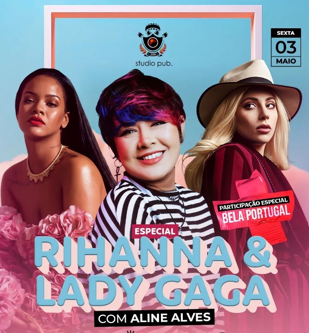 O Studio Pub se tornará o palco de um espetáculo extraordinário, onde duas das maiores divas da música pop serão homenageadas em uma noite que promete ser inesquecível. Quem vai dar vida a esse espetáculo é a cantora paraense Aline Alves e sua banda, em uma viagem emocionante através dos maiores sucessos de Lady Gaga e Rihanna. Prepare-se para uma performance arrebatadora, onde cada nota será carregada com a paixão e o talento de Aline e sua equipe.