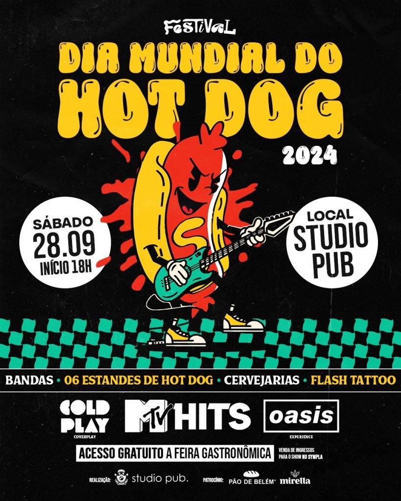 Para os amantes de hot dog, cerveja e música ao vivo, neste sábado (28), vai ser realizado mais uma edição do Festival Dia Mundial do Hot Dog, no Studio Pub da Presidente Pernambuco a partir das 18h, com banda ao vivo, muitas opções de hot dogs, além de cervejas artesanais e diversas outras atrações.