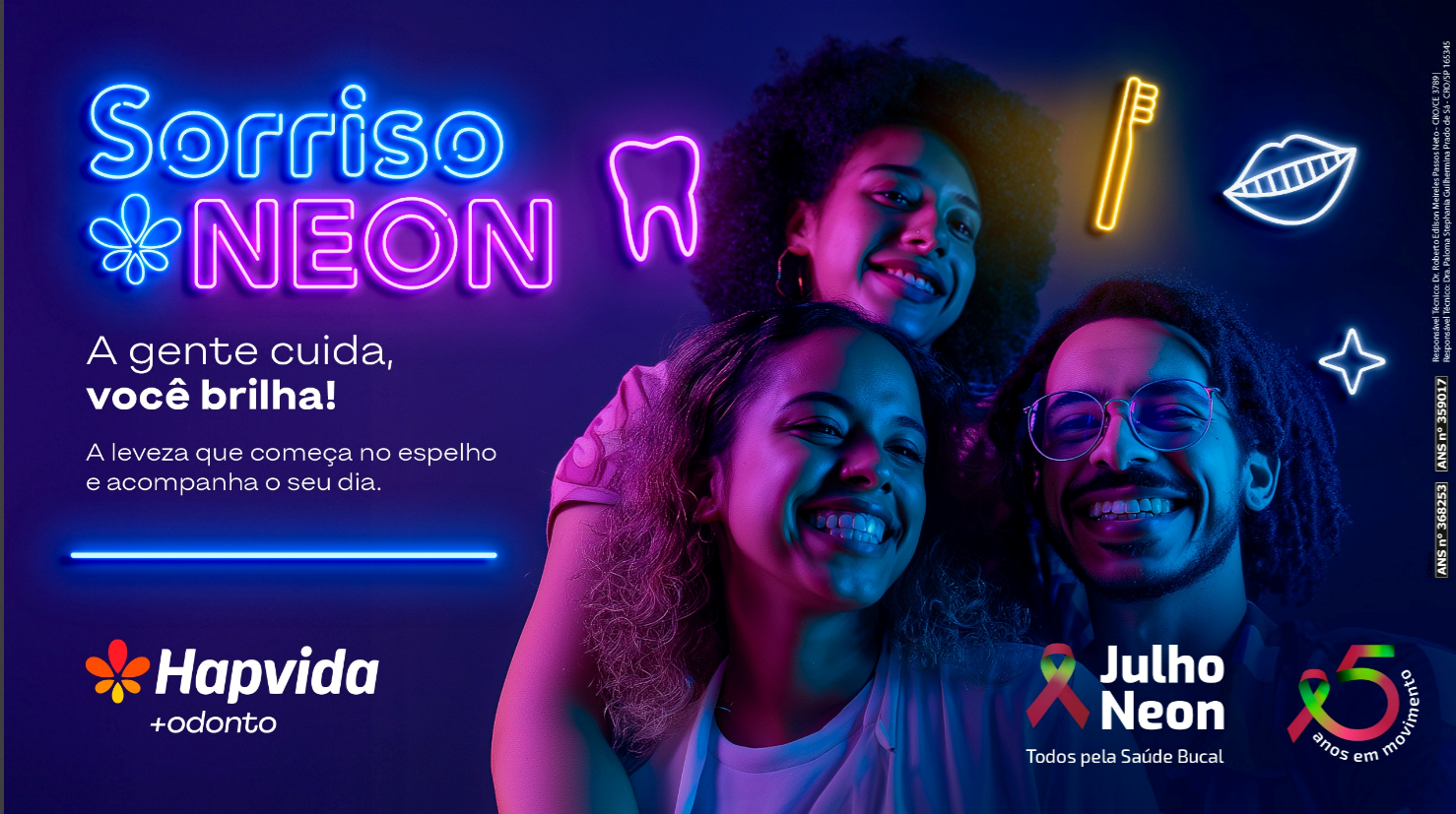 Julho Neon: Hapvida +Odonto oferece saúde bucal como pilar do bem-estar integral todos os dias do ano