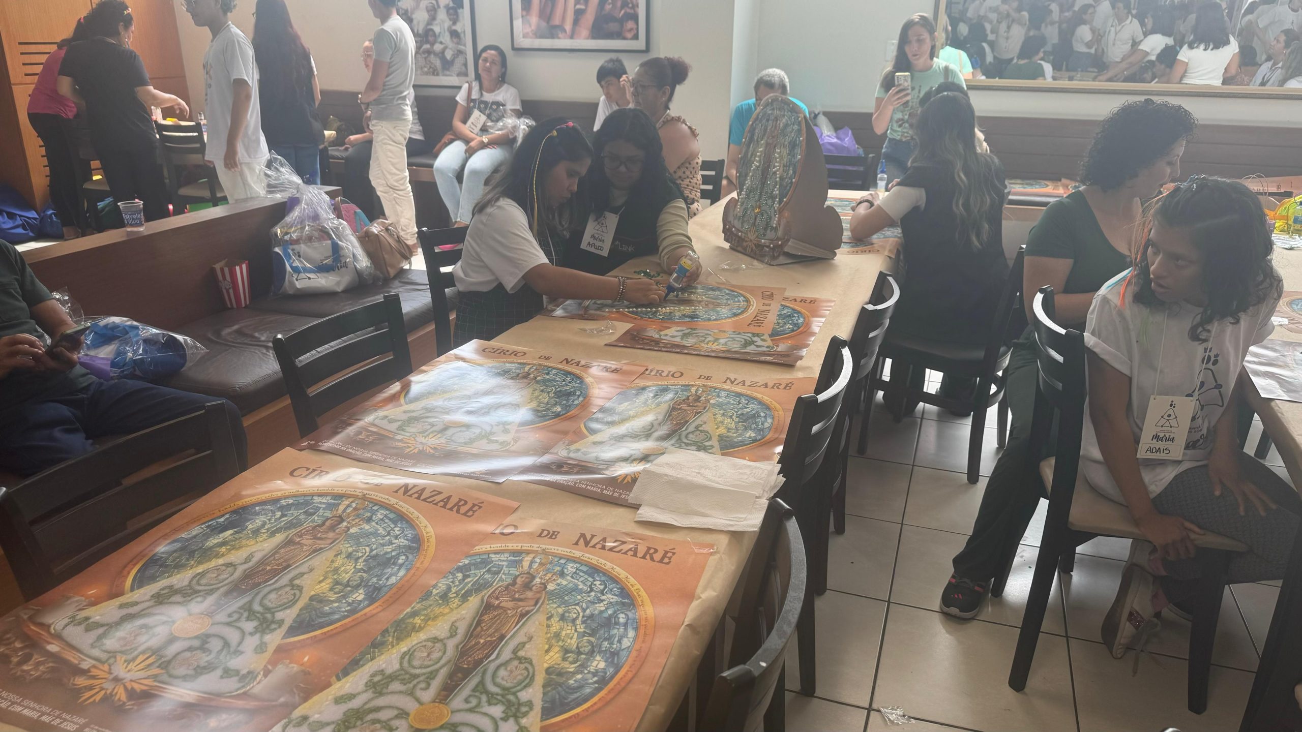 v Abertura das estações/oficinas, todas funcionando simultaneamente: Estação “Sob o Manto de Maria” – oficina decorativa dos cartazes do Círio; Estação “Canoa de Promesseiros” – pintura dos barcos de miriti, que posteriormente serão expostos no evento “Canoa de Promesseiros” do TCE/PA; Estação “Colo de Mãe” com serviços de Estética: massagem dos pés, massagem corporal, limpeza de pele, sobrancelha e maquiagem; Estação Lanche – distribuição de lanches ao longo da manhã e, no encerramento, um delicioso arroz de galinha preparado pela própria equipe da Fazenda da Esperança.