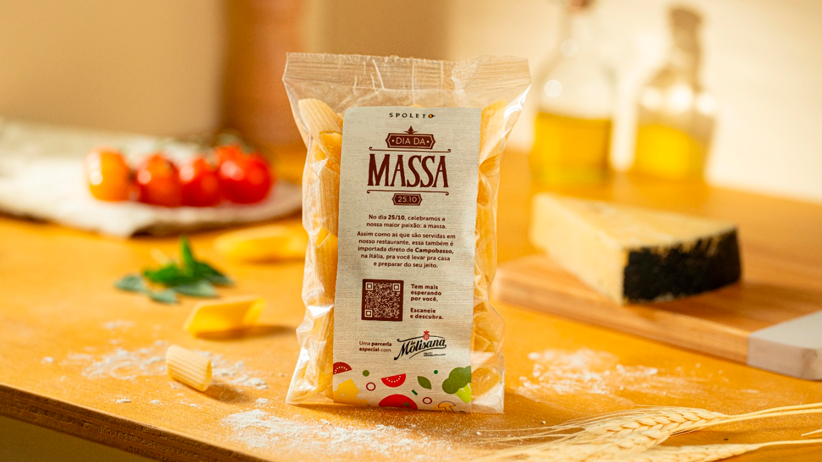 O Spoleto — líder de mercado, maior rede de franquias de comida italiana do Brasil e parte do Grupo Trigo — convida seus clientes a celebrarem o Dia da Massa em 25 de outubro. Como tradição, a rede vai presentear os consumidores com um brinde em formato exclusivo: um pacotinho de massa crua importada da Itália: o Pennoni Rigati .