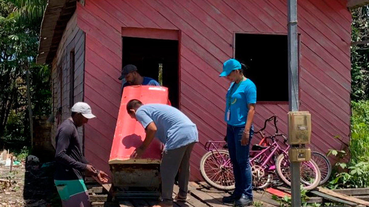Durante a ação em Curralinho, 15 clientes foram contemplados com a substituição de geladeiras antigas, de alto consumo, por eletrodomésticos novos com selo “A” de eficiência energética.