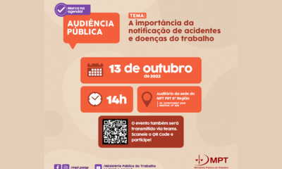 Empresas, entidades governamentais e não governamentais são convidados para evento, que integra ações nacionais do MPT voltadas ao mapeamento e elaboração de políticas públicas para a...