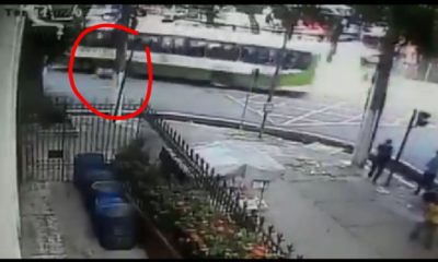 Ônibus por pouco não passa por cima de motoqueiro em Belém