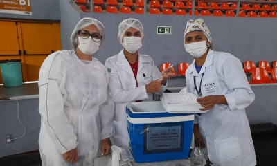 Profissionais da saúde trabalhando na campanha de vacinação em Belém