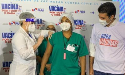 A vacinação contra a Covid-19 no Pará teve início nesta terça-feira (19), em Belém. A técnica de enfermagem é a primeira pessoa vacinada no Pará, Shirley...